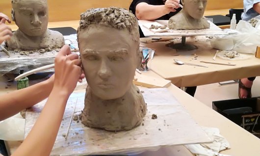 In unserem Bildhaueratelier raspeln, kneten, sägen, töpfern, schleifen, kleistern, meißeln, stemmen, bohren, feilen und schrauben wir.